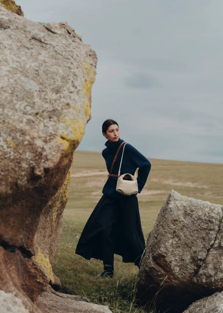 Obtenu par le pliage de quatre pans de cuir intégrant la poignée, le modèle « Béri » revêt un style fort et épuré avec son fond travaillé et son fermoir central. Décliné en édition Onda, il se pare d’un relief ondulé évoquant une écorce de cuir. Chaque boucle est placée une à une à la main avant d’être piquée, soulignant la dextérité des artisans maroquiniers.