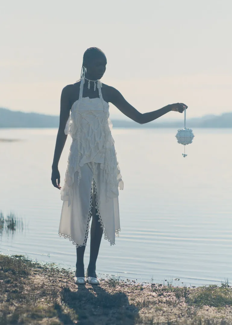 Dévoilée à la Paris Fashion Week, la « Button Bow Sphere » incarne la rencontre entre l’univers féminin et poétique de Róisín Pierce et le travail du cuir signé Polène.
