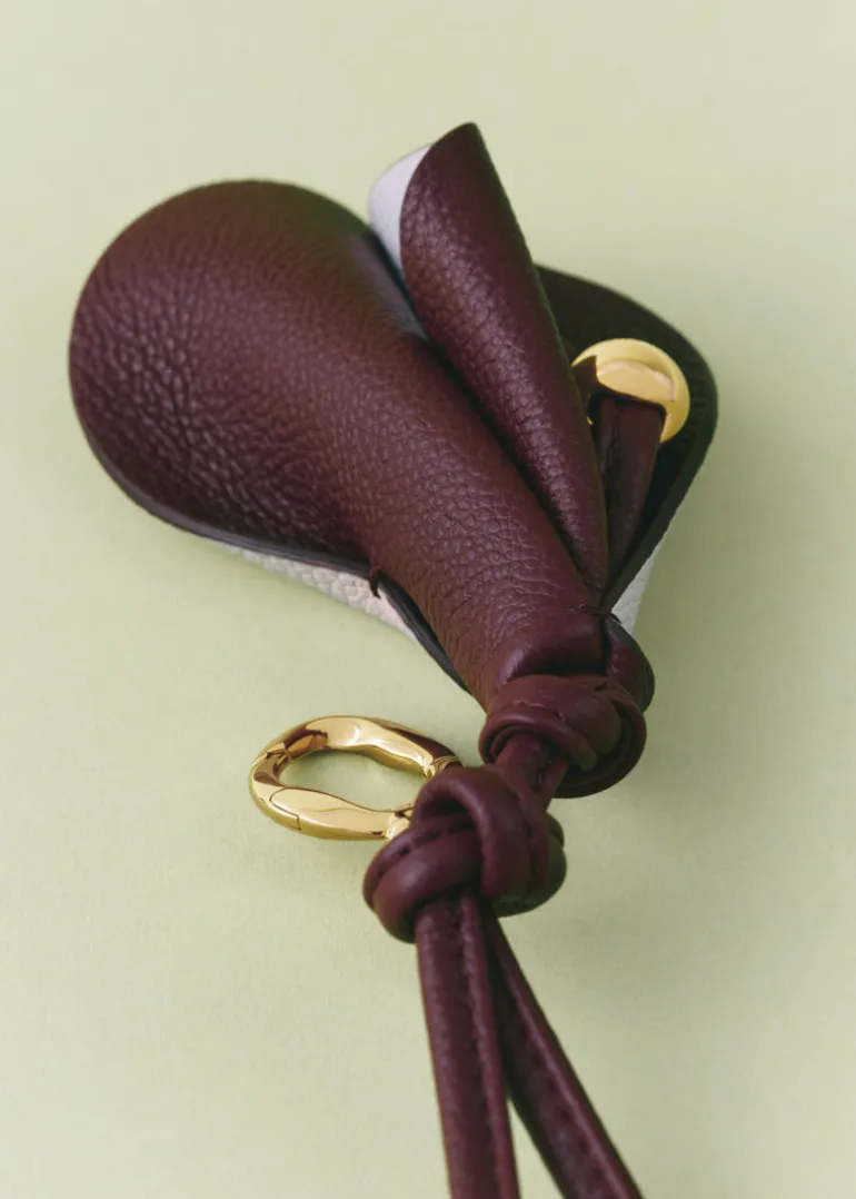 Issu de la collection Plèi 100% réalisée en chutes de cuir upcyclées, le charm « Pili » est inspiré de l’Arum. Son pétale se dédouble grâce à un savant pliage maintenu par de discrets points de couture à la main. Il accessoirise un sac ou s’emploie comme porte-clé.