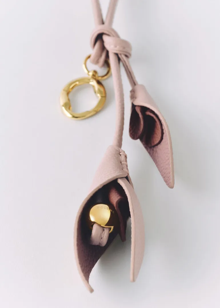 Issu de la collection Plèi 100% réalisée en chutes de cuir upcyclées, le charm « Touka » s’inspire de la fleur Oiseau de paradis. Ses pétales enroulés sont dissimulés sous des feuilles reliées par des points de couture réalisés à la main.Il accessoirise un sac ou s’emploie comme porte-clé.