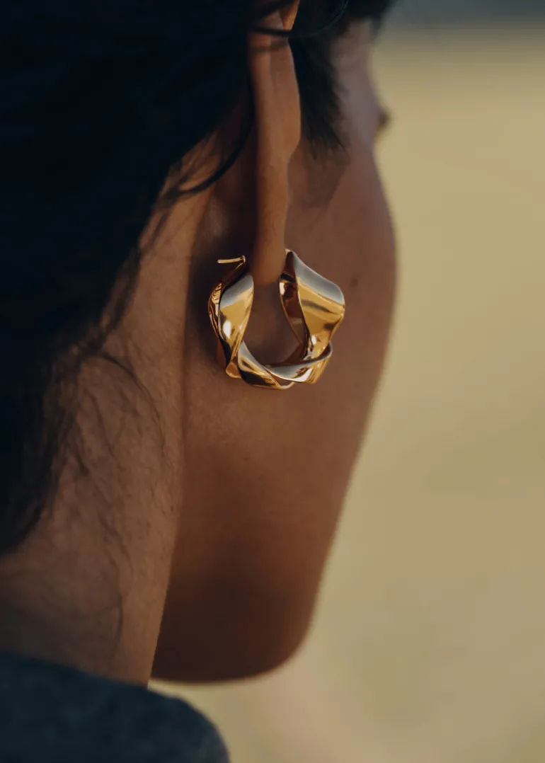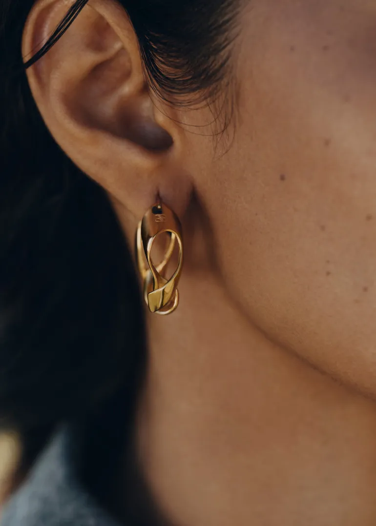 Les créoles ondulées Éole sont façonnées à partir de deux rubans dans un jeu infini d’entrelacs.