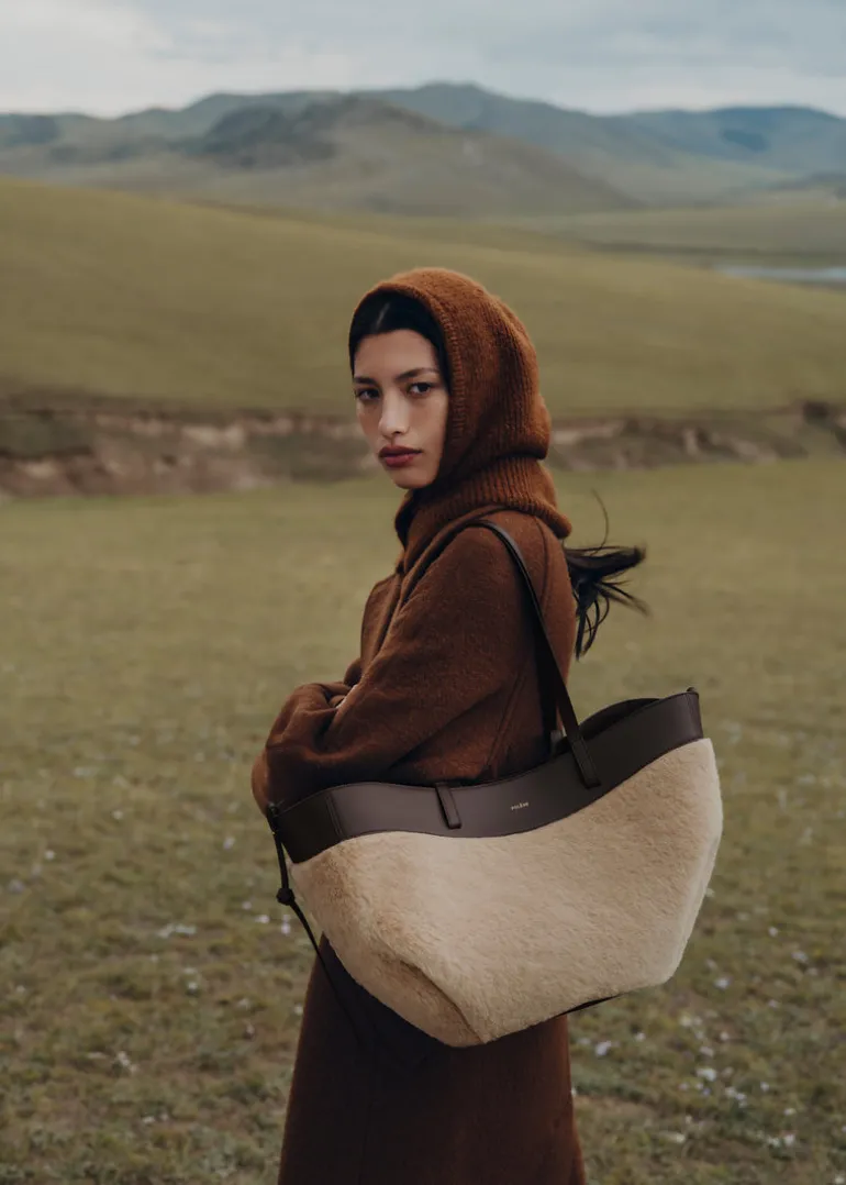 Un cabas fait d’ondulations, plis et arrondis pouvant revêtir deux formes. Celle d’un panier avec ses côtés ouverts, lanières à l’extérieur. Ou d’un sac plus floral et fermé avec ses côtés rentrés, lanières croisées à l’intérieur. Invitation à la douceur, cette édition est coupée dans une laine de haute qualité qui combine des fils d’alpaga et de mohair, reconnus pour leur toucher réconfortant.