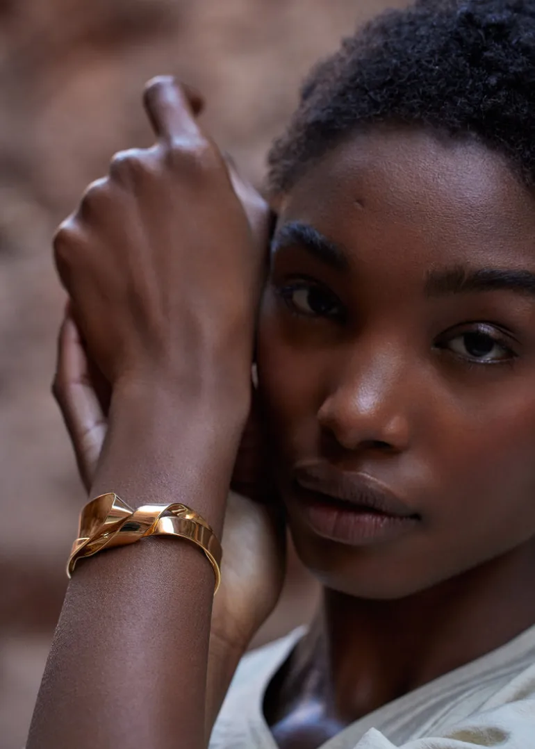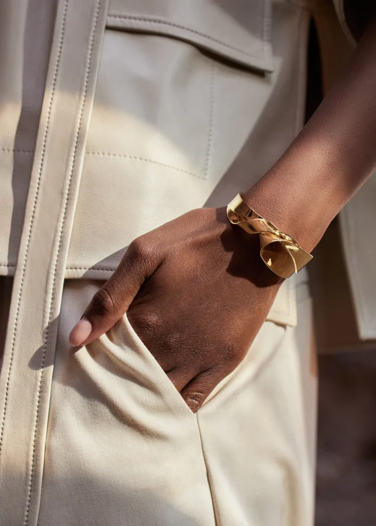 La manchette Éole fait la part belle au travail de la courbe et de l’ondulation, thèmes chers à Polène. Ses lignes fluides, comme liquides, habillent le poignet avec élégance.