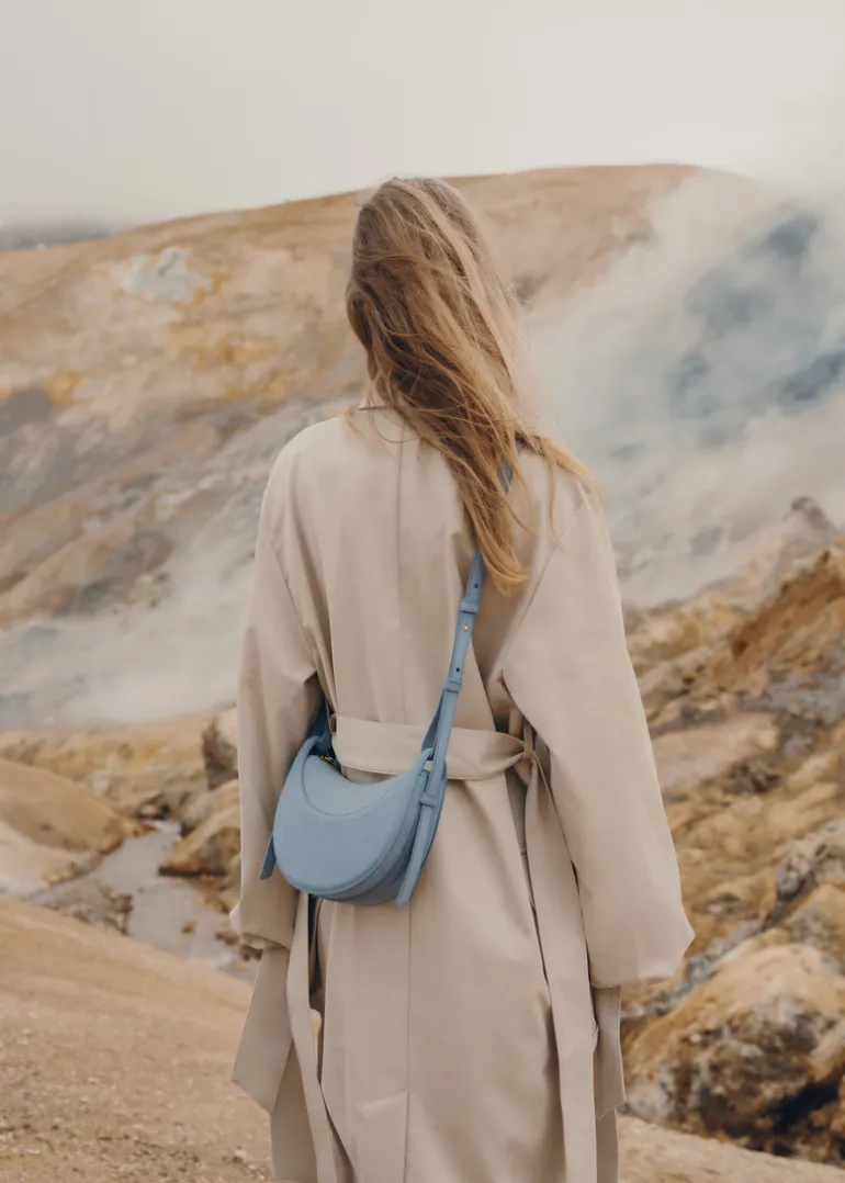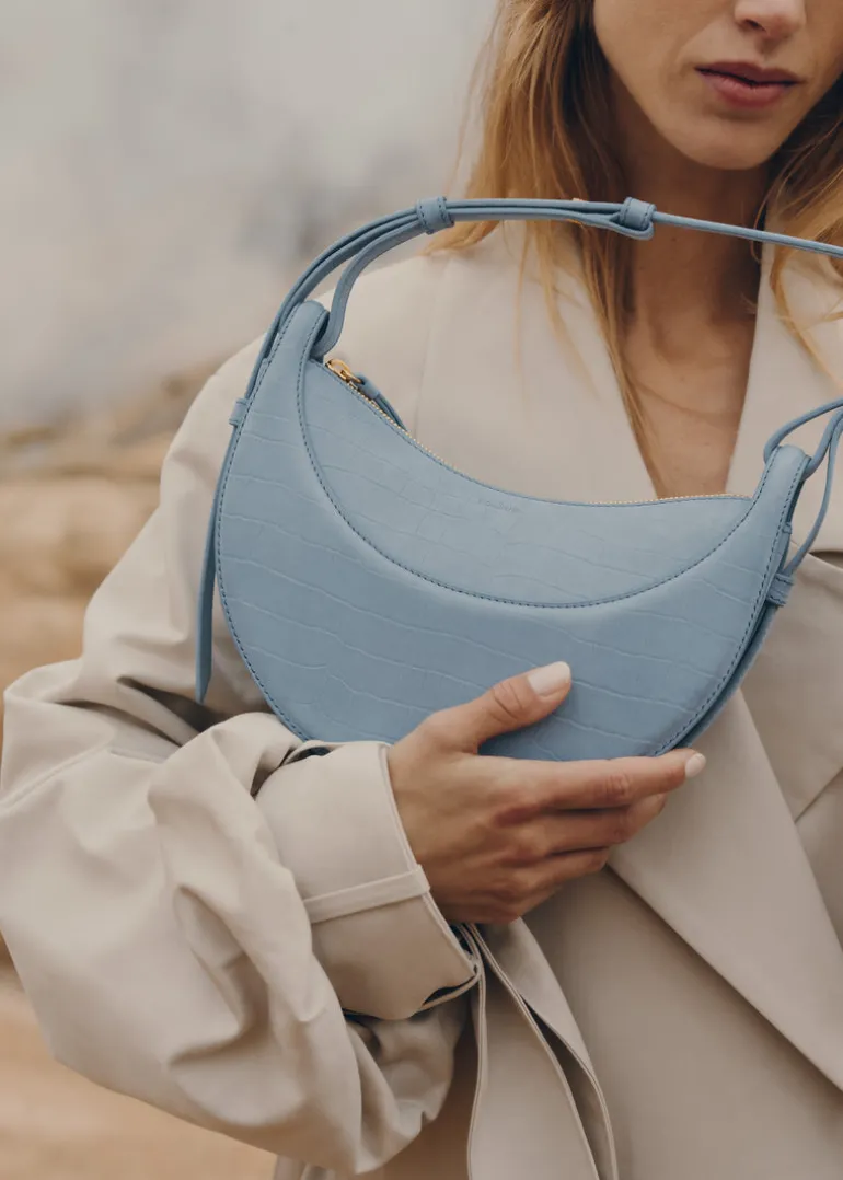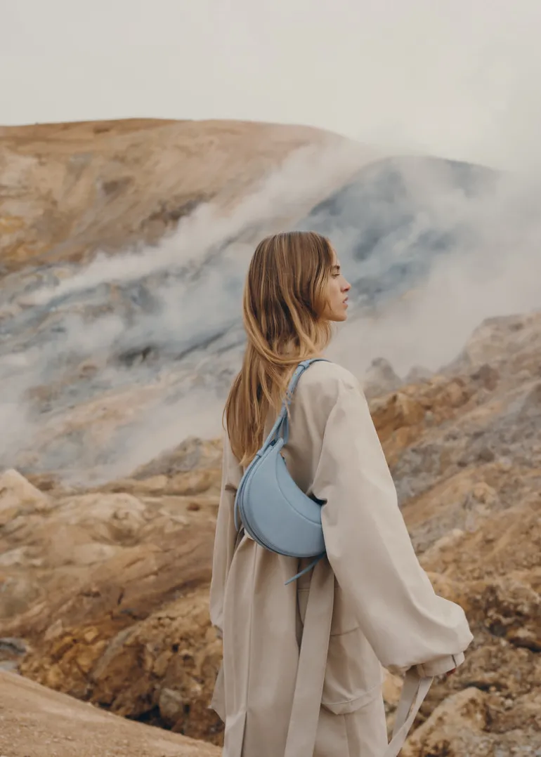 Avec sa forme bombée, son garnissage avec mousse et ses points cousus à la main, le « Numéro Dix » s’inspire des codes équestres de la sellerie. Son design demi-lune joue sur la juxtaposition de courbes.