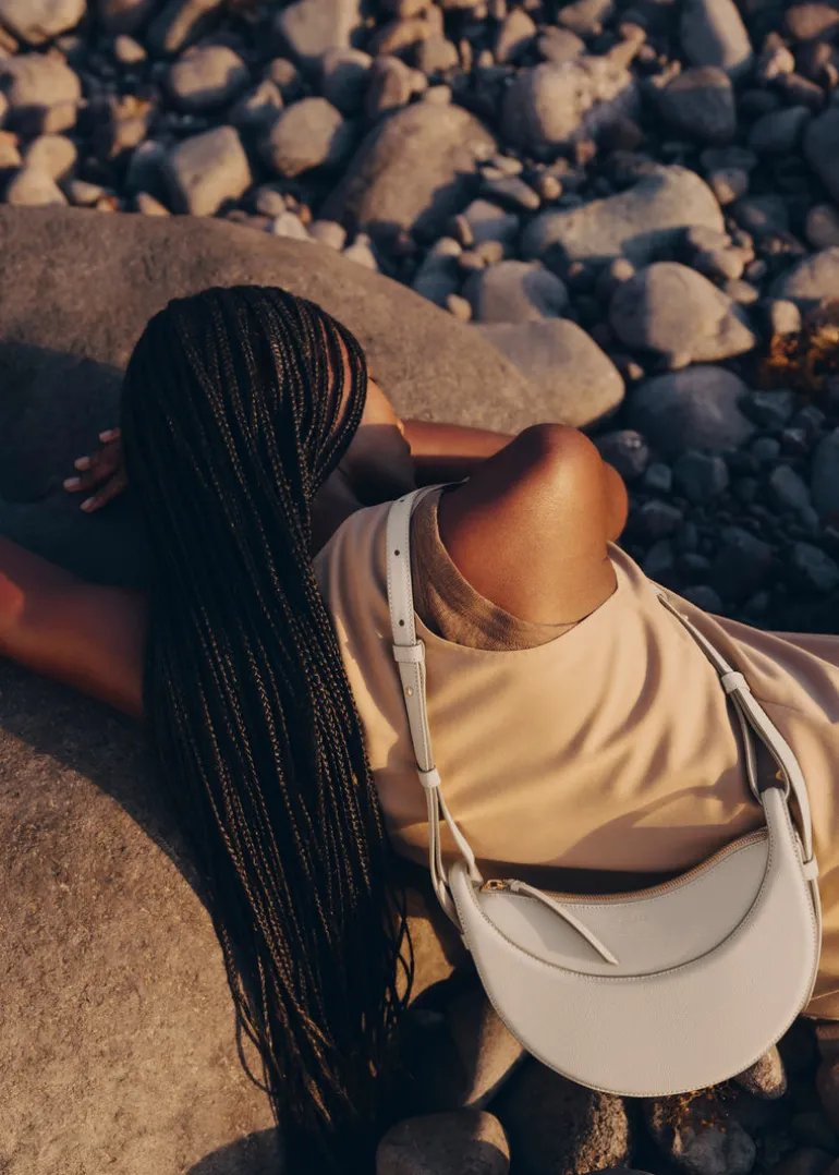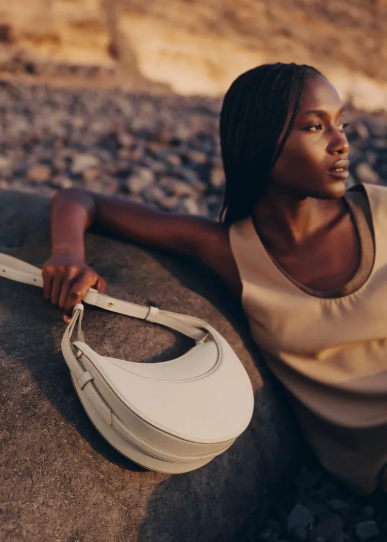 Avec sa forme bombée, son garnissage avec mousse et ses points cousus à la main, le « Numéro Dix » s’inspire des codes équestres de la sellerie. Son design demi-lune joue sur la juxtaposition de courbes.