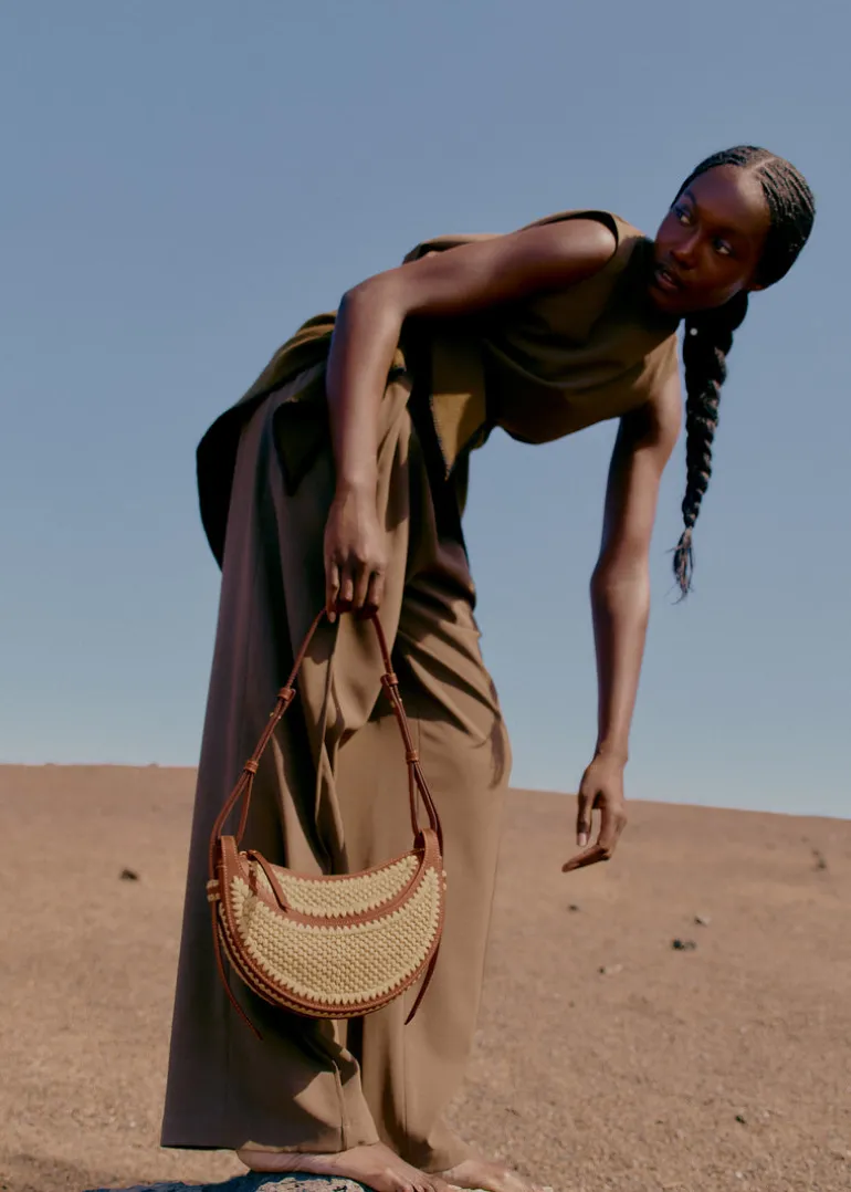 Le Numéro Dix s’habille de raphia, fibre végétale à la souplesse naturelle. Ses demi-lunes sont crochetés à la main, selon la technique du point de riz, par des artisans à Madagascar. Cette édition incarne la rencontre entre l’artisanat du raphia et le savoir-faire de la maroquinerie.