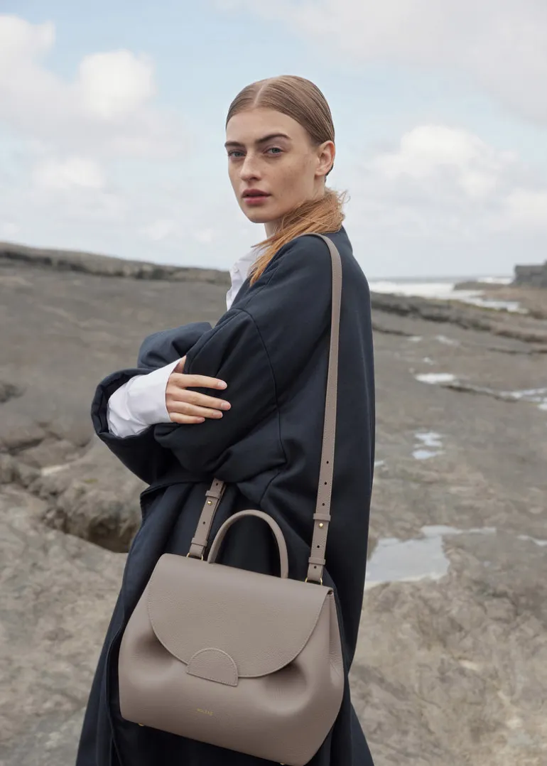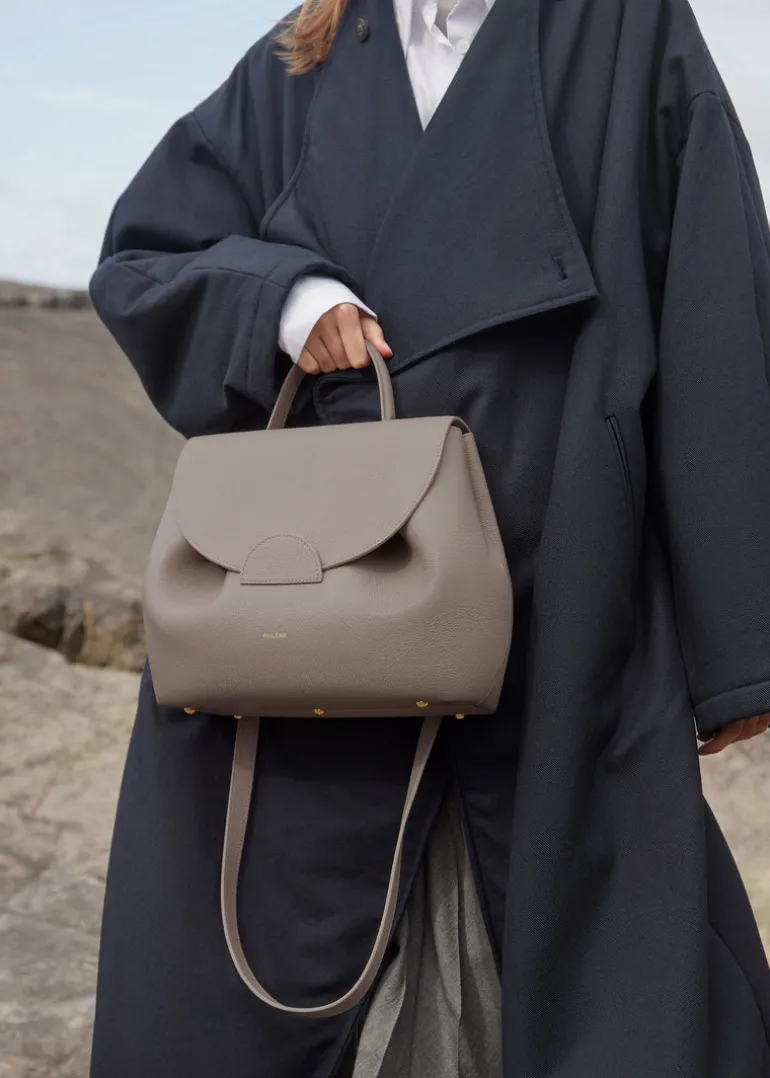 Première création de Polène, le « Numéro Un » se reconnaît à son entrelacement de courbes et au travail du pli qui donnent au modèle sa forme signature.