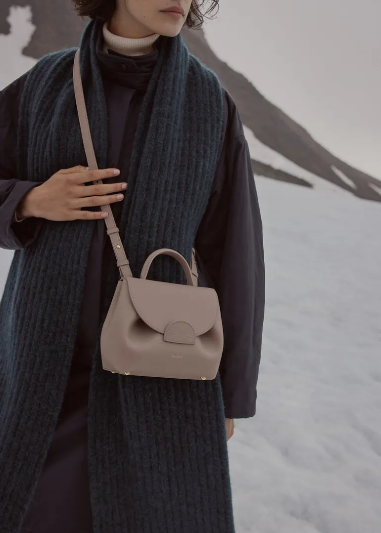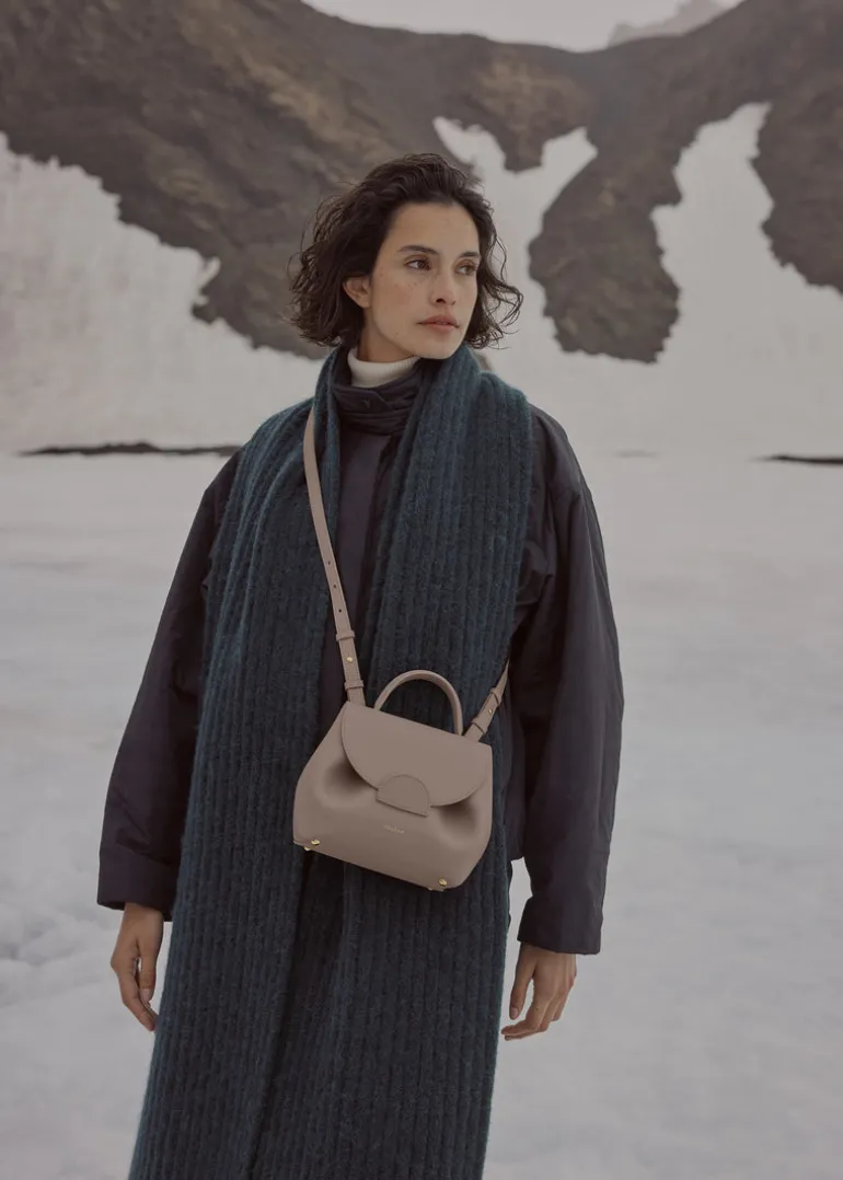 Réinterprétation du modèle iconique de Polène, le « Numéro Un Nano » se reconnaît à son entrelacement de courbes et au travail du pli qui donnent au modèle sa forme signature.
