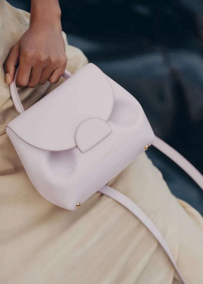 Réinterprétation du modèle iconique de Polène, le « Numéro Un Nano » se reconnaît à son entrelacement de courbes et au travail du pli qui donnent au modèle sa forme signature.