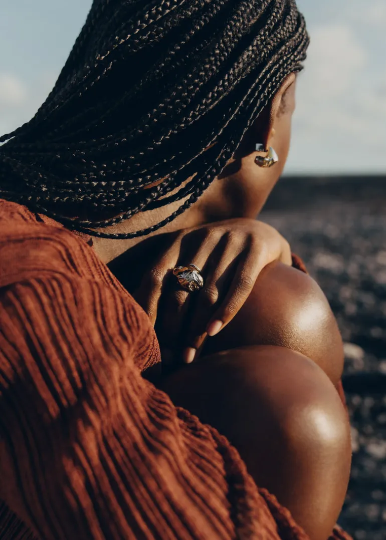 Des boucles d’oreilles mini à l’allure forte et affirmée avec leur forme de pépite. La texture comme en fusion passe d’une apparence polie à un aspect rocailleux. Dans cette édition, la teinte argentée du palladium fusionne avec l’éclat délicat de l’or 24 carats.